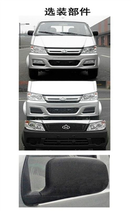 | 整车说明 | 随底盘选装后视镜,前保险杠,引擎盖,中网,前雾灯,可不装前雾灯。整车长度/轴距对应关系为(mm):4160/2700,4450/2990。 |